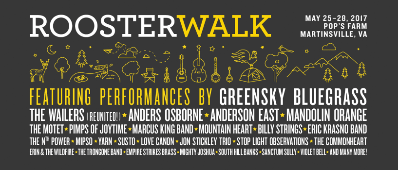 - Headliners. Rooster Walk organizers continue to top themselves each year with their surprisingly rich and electic offerings and this year is no exception. The nearly 50 eclectic acts include headliners Greensky Bluegrass, The Wailers (Reunited), Mandolin Orange, Anders Osborne, Anderson East, the Motet, Marcus King Band (two sets), Pimps of Joytime, Mipso,Love Billy Strings, Eric Krasno, YARN, Susto and Artist at Large and Bassett, Virginia, native Josh Shilling. Marcus King Band and Susto have been named among “five emerging bands to catch on the southern festival circuit.” The full band schedule has been released, so you can start mapping out your minute-by-minute viewing plans here.