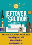Rooster Walk Music and Arts Festival and FloydFest fans, listen up: You can catch a rare acousticLeftover Salmon! set beginning at 9 p.m. on Thursday, Nov. 16, at the historic Rives Theatre in Martinsville, Virginia.