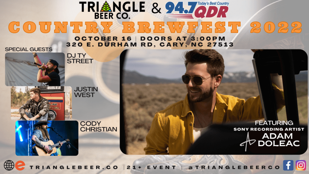 Triangle Beer Co. & WQDR present Country Brewfest 2022 in Cary on Oct. 16 October 4, 2022 by lsnedeker Leave a comment For tickets and more information, visit this link. Share this: Click to share on X (Opens in new window) X Click to share on Facebook (Opens in new window) Facebook Like Loading... Related