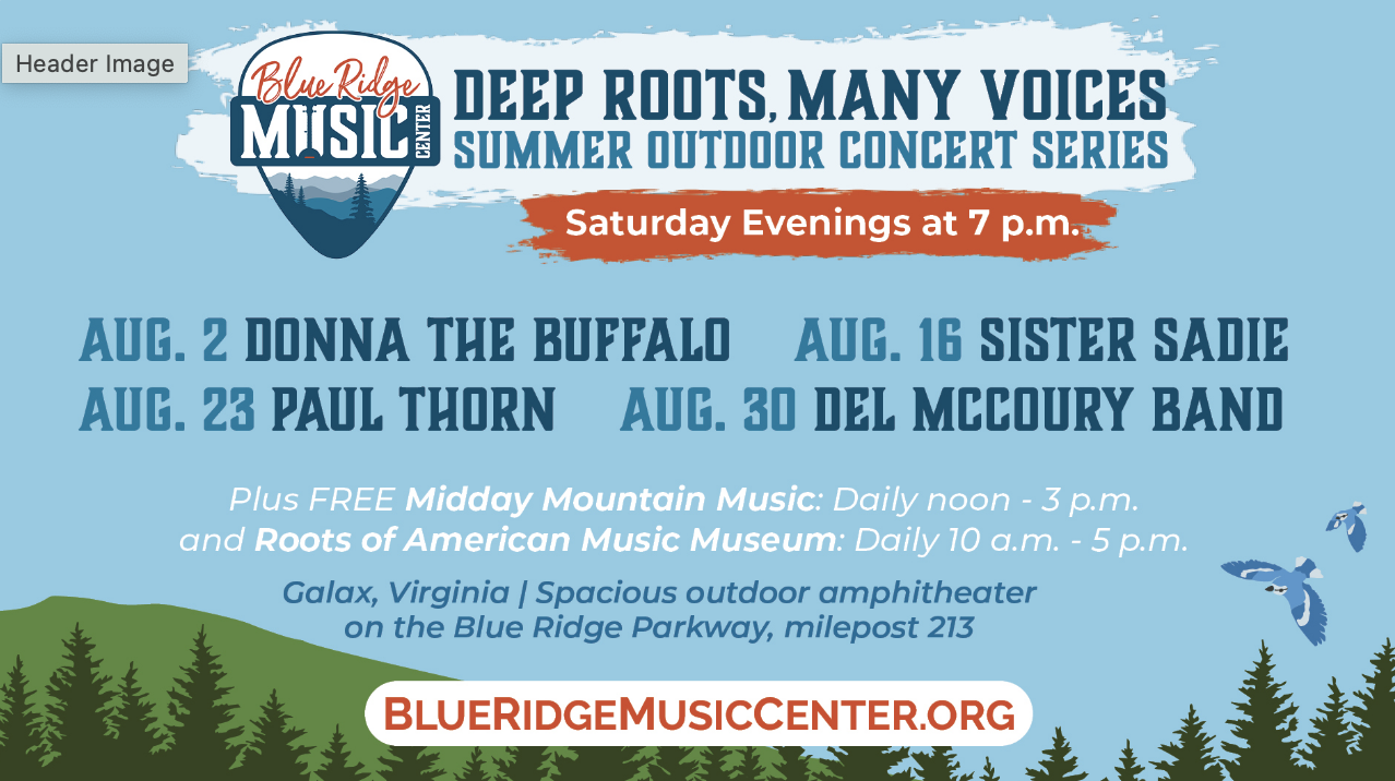 | Do you love American Roots Music? Enjoy seeing some of the best musicians and bands in a magnificent outdoor venue? Then the Blue Ridge Music Center Summer Saturday Evening Concert Series should hit just the right note. The annual concert series is held in a spacious outdoor amphitheater at the base of Fisher Peak just off The Blue Ridge Parkway (Milepost 213) between Galax, Virginia, and Mount Airy, North Carolina. * Dori Freeman (July 26) * Donna The Buffalo (Aug. 2) * Sister Sadie (Aug. 16) * Paul Thorn (Aug. 23) * Del McCoury Band (Aug 30) Find tickets at the link. In addition to the Saturday concerts the Music Center also offers: Midday Mountain Music: Free local and regional music from 12-3 p.m. every day the Music Center is open on the breezeway. Milepost Music: Free concerts from 2-4 p.m. Sundays from June through September at iconic destinations on the Parkway. On the Road: Throughout the year, the Music Center presents events at partner locations off the Parkway or virtually. Visit the FAQ page for more information about concerts. |