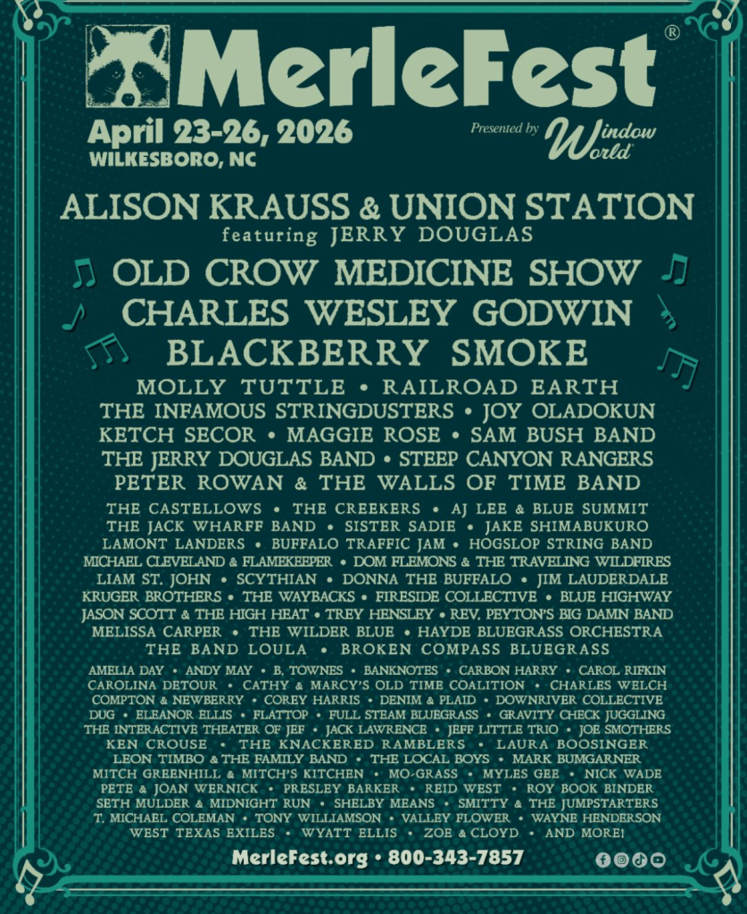MerleFest, presented by Window World, will hold its 38th annual festival April 23-26, 2026 on the campus of Wilkes Community College, featuring a who’s who of “traditional plus” talent.