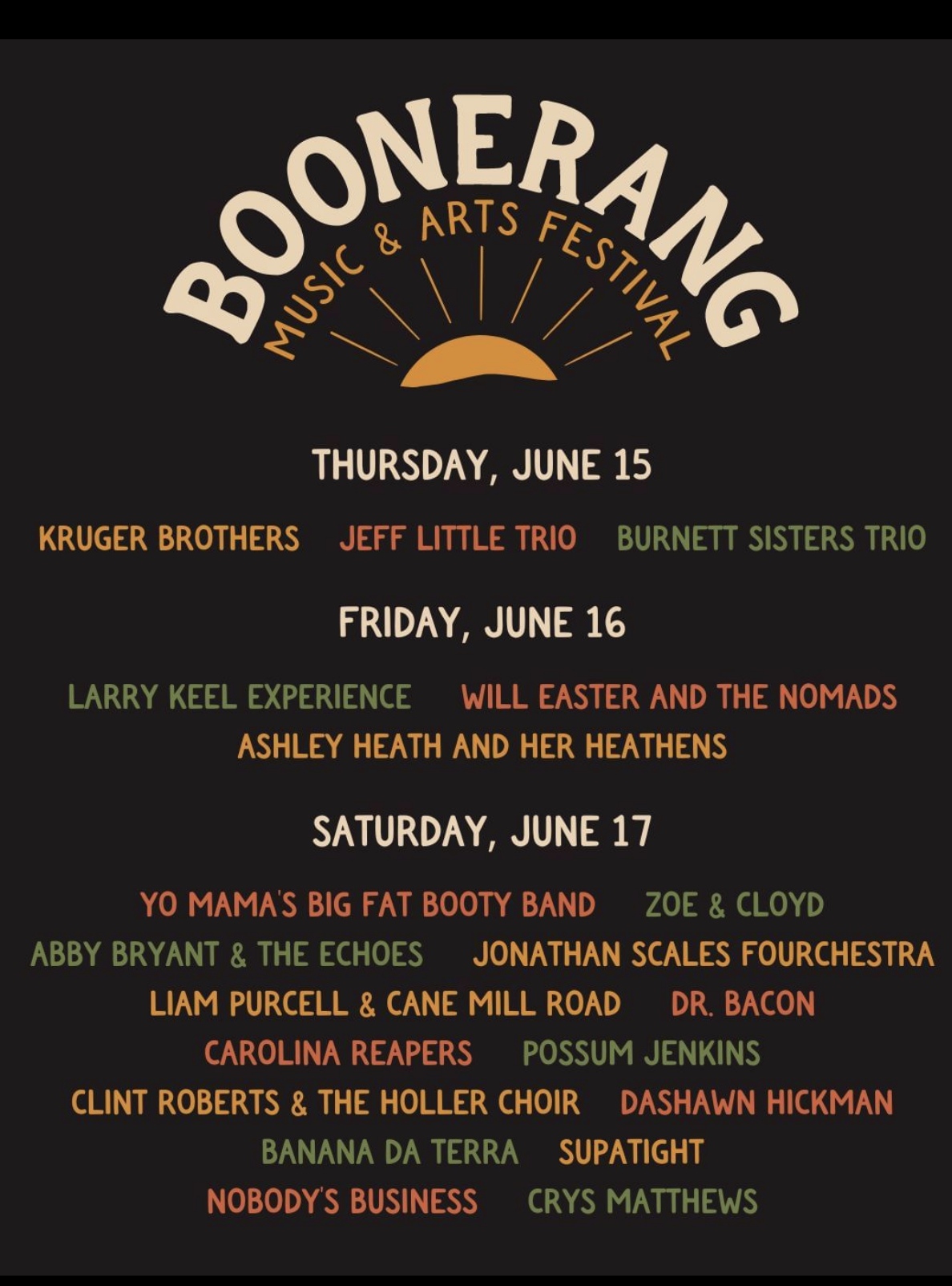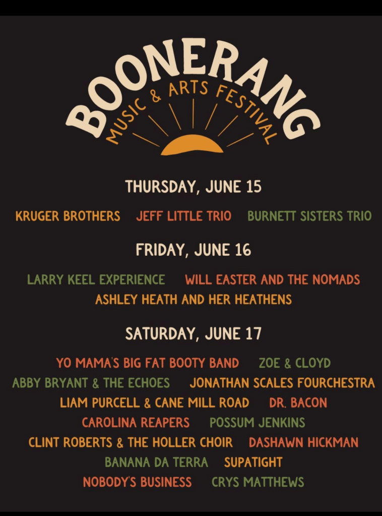 Boonerang is a free music and arts festival in downtown Boone. The festival includes multiple concert stages, primarily made up of artists with Boone connections. Other festival highlights include local food and beer, a vendor market, a kids zone, silent discos, and afterparties. To volunteer or learn more visit: https://www.boonerangfest.com/