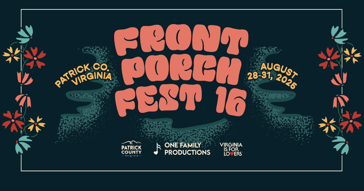 Front Porch Fest is produced by One Family Productions, a nonprofit working to support community enrichment and growth. Proceeds from this event are donated to local charities such as the Patrick County Food Bank and Caring Hearts Free Clinic of Patrick County and others.